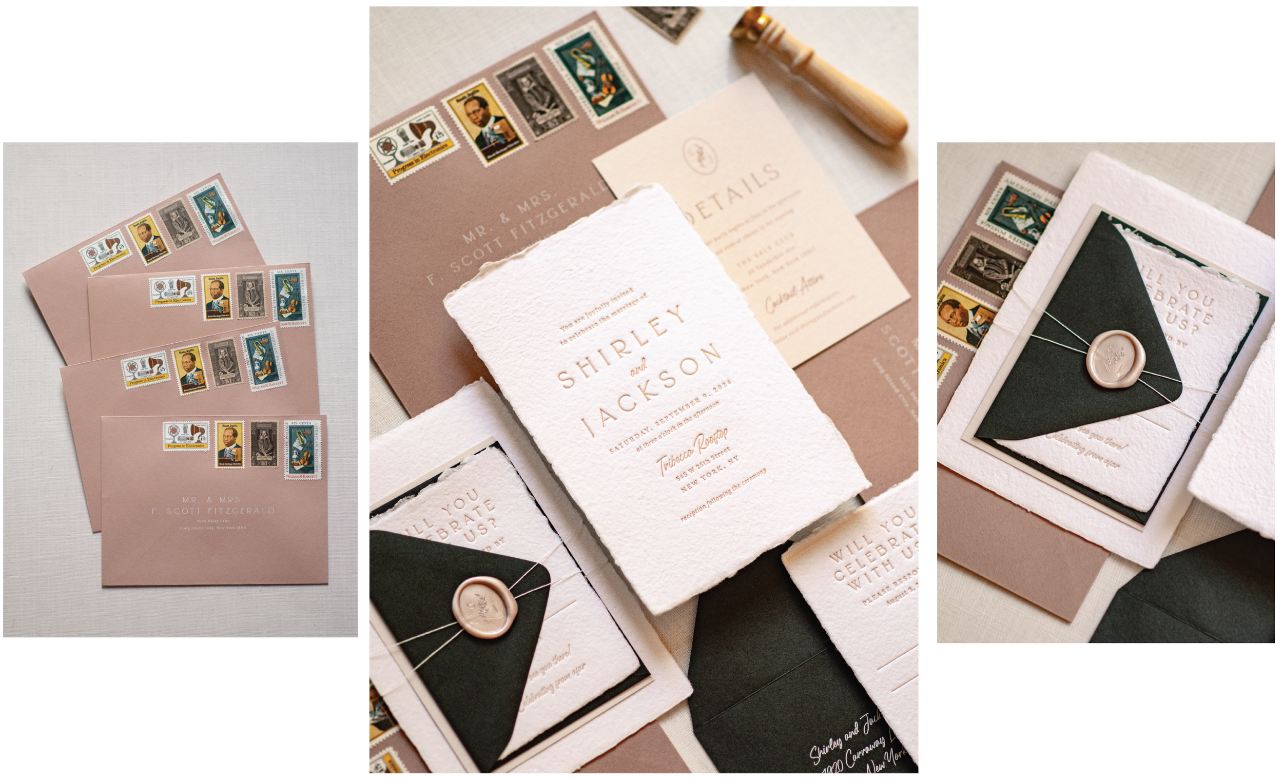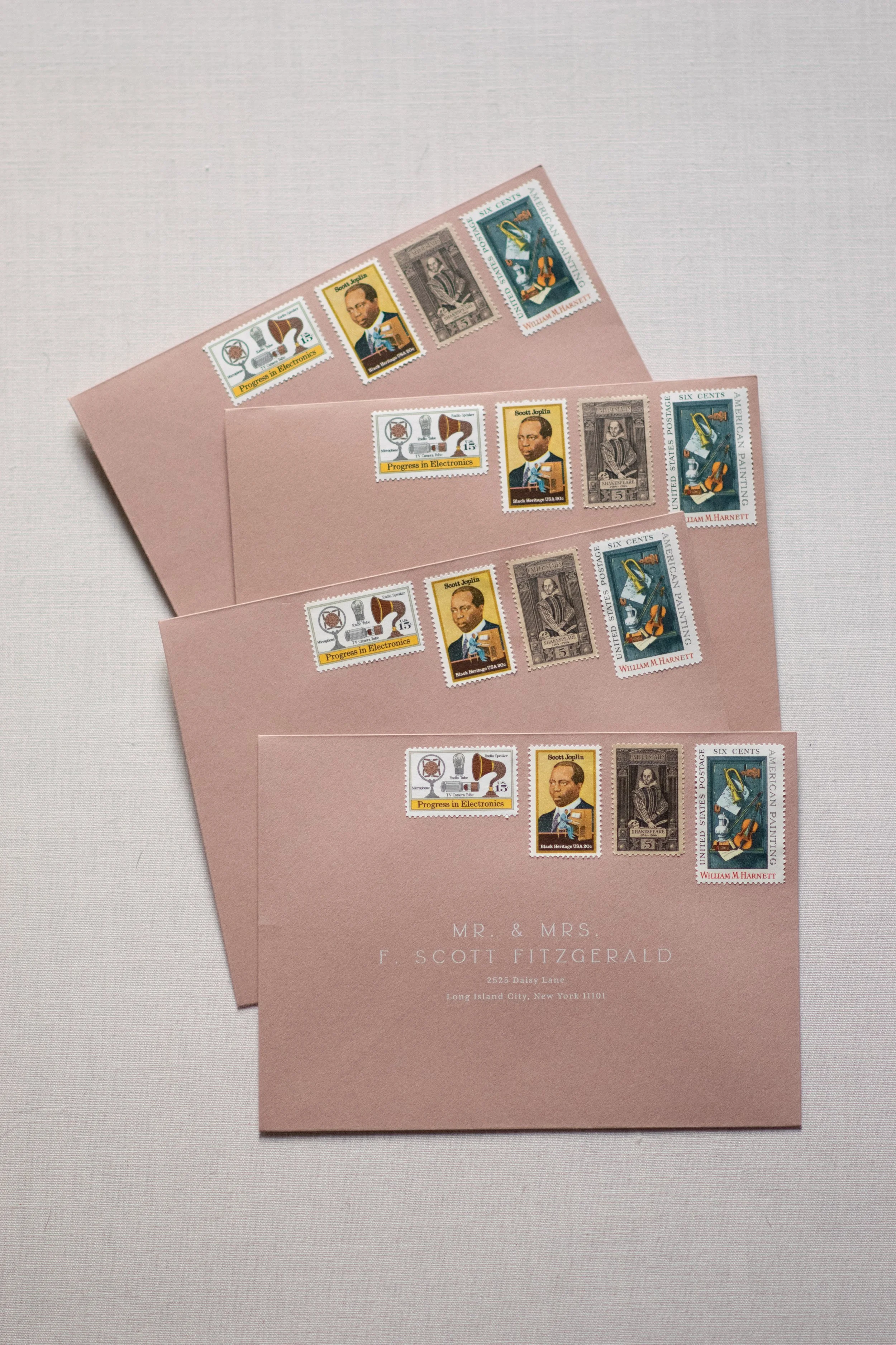 Invite your guests in style with The Fitzgerald Collection. Like F. Scott Fitzgerald's celebrated novel The Great Gatsby, this collection emulates the class and playfulness of the 1920s. Capture the essence of your timeless romance with an invitation your wedding guests won’t forget.
